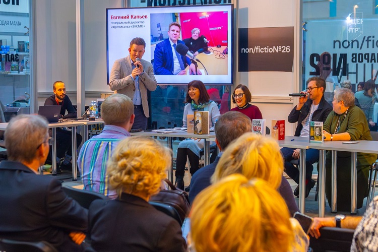 На ярмарке интеллектуальной литературы non/fictio№26 был представлен новый проект «Книжные люди», который с января 2024 года выходит на «Радио Москвы», а с осени – в виде подкастов на «Москва FM» и Литрес. Гости мероприятия поделились личным мнением о программе, предложили идеи для ее развития. Каждый назвал топ-3 главных для себя книг 2024 года. Участие в мероприятии приняли Максим Димов, Ирина Кленская, Светлана Зорина, Мария Залесская, Дмитрий Бак, Екатерина Писарева, Евгений Капьев, Сергей Турко, Борис Кузнецов, Ирина Золина, Валерий Шабашов, Марина Кадетова, Елена Фесенко, Алина Дальская, Хельга Патаки и Олег Фочкин. Читайте статью «“Пока литература с нами, мы будем жить”: книжные люди назвали свои главные книги года».